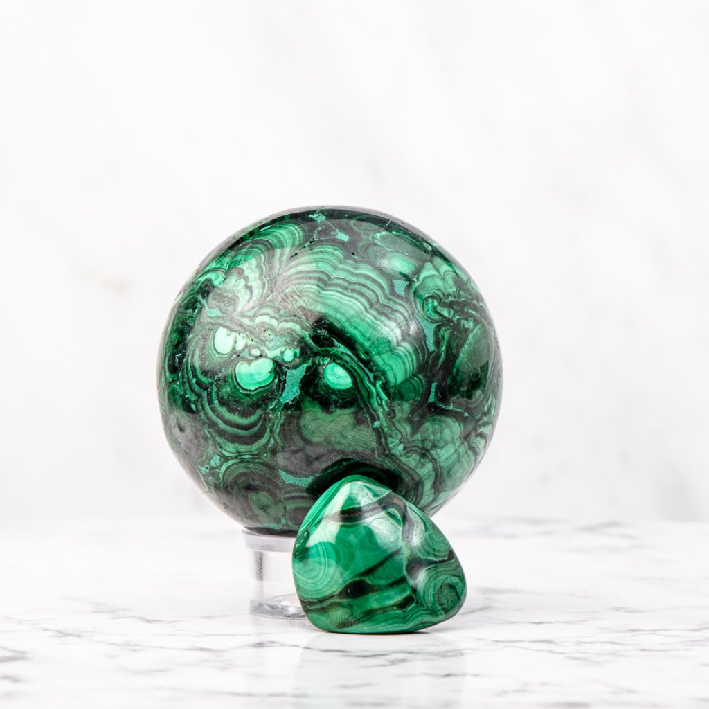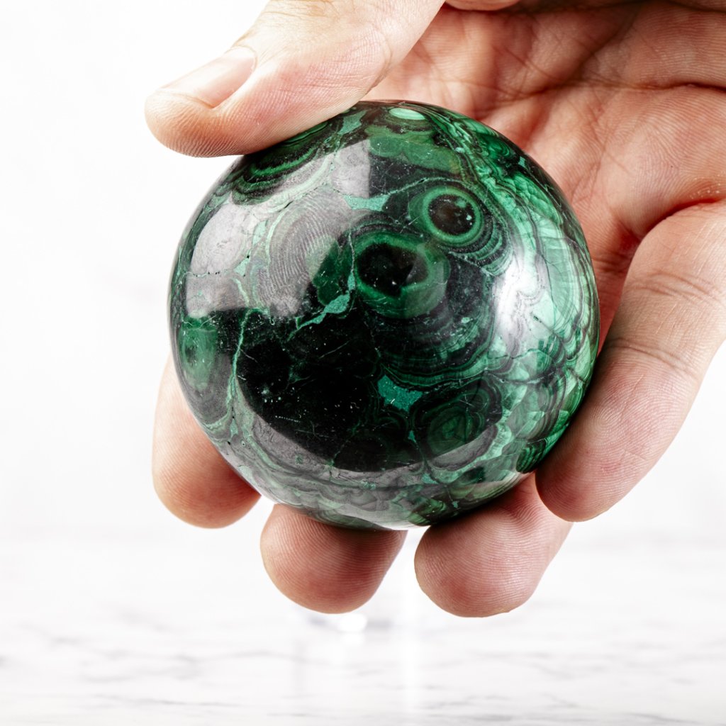 MALACHIT KOULE LEŠTĚNÁ (XL) PREMIUM 504g
