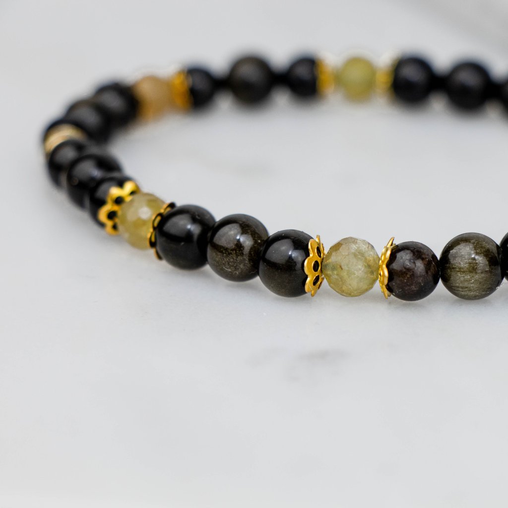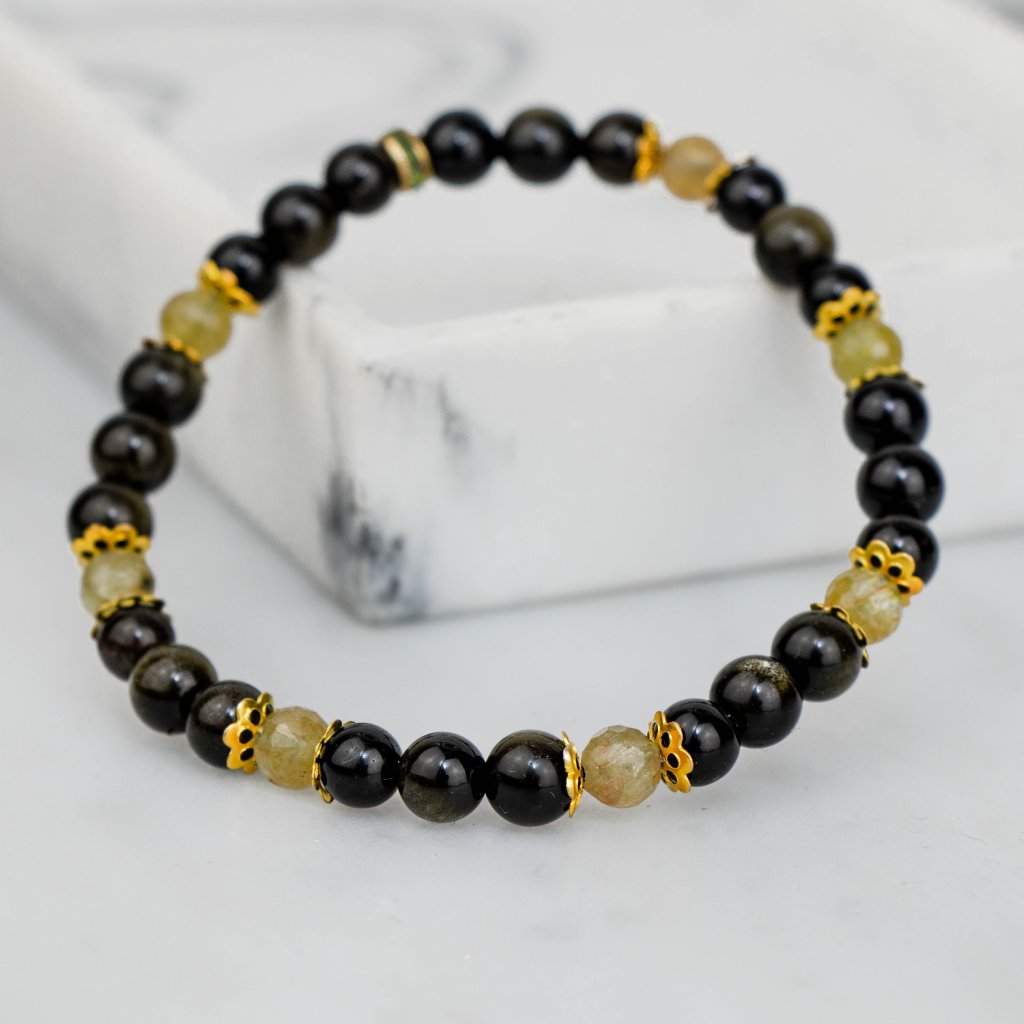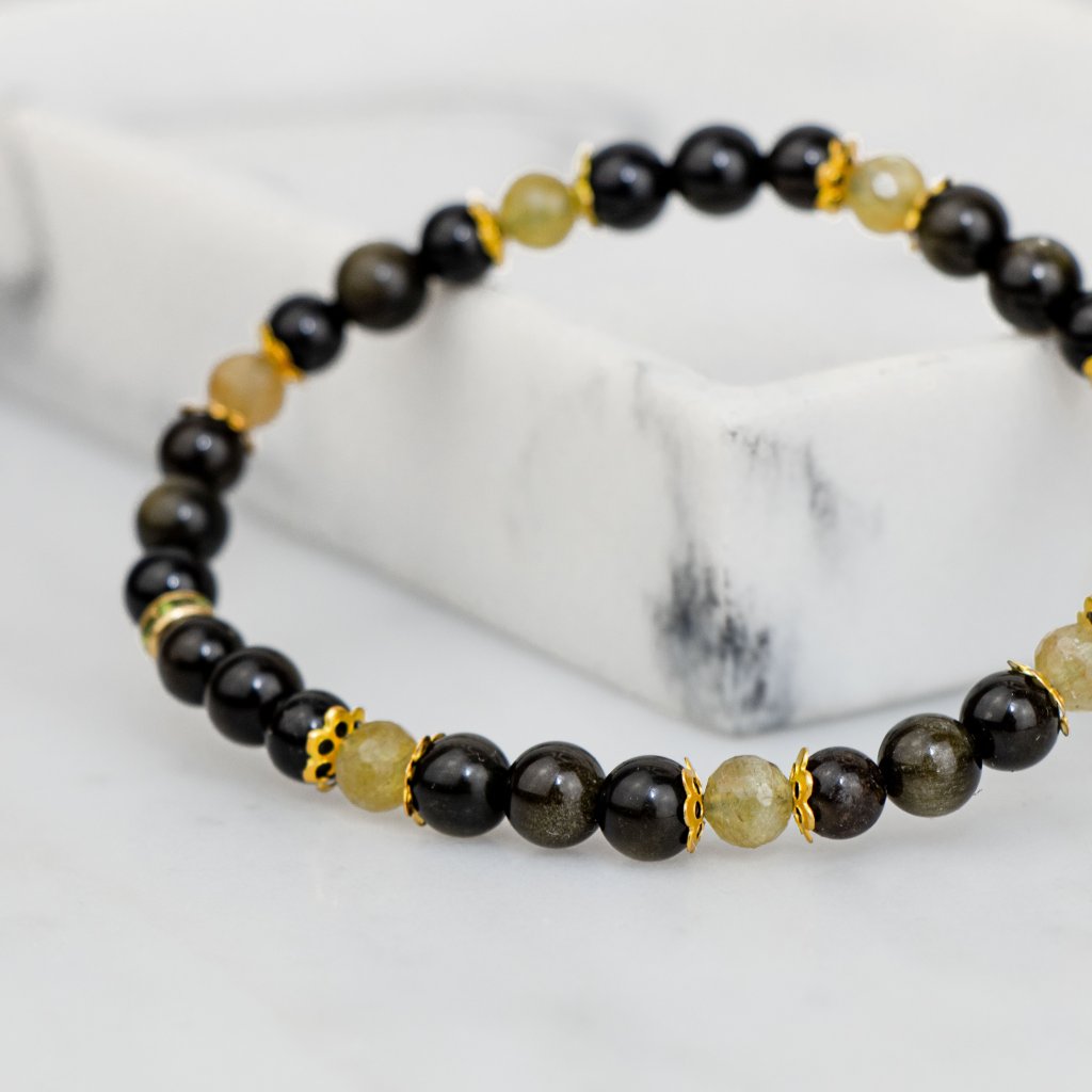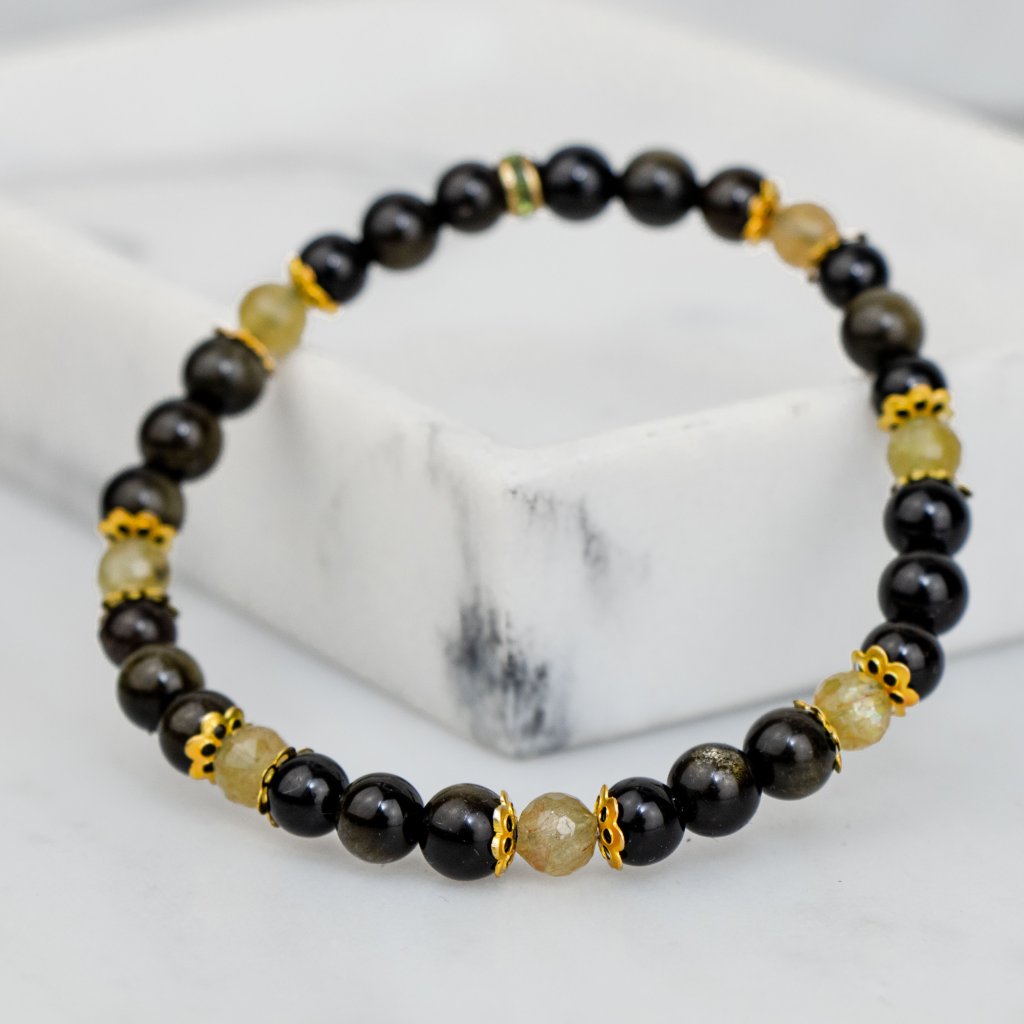 ZLATÝ OBSIDIÁN X ŽLUTÝ APATIT NÁRAMEK S DEKORACÍ (UNISEX) 6