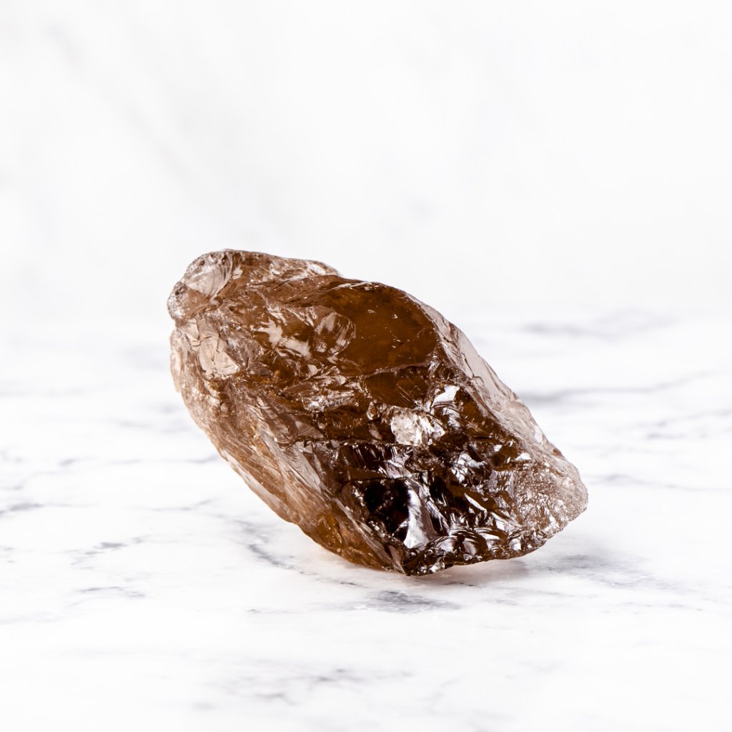 kouřový křemen, průhledný světle hnědo šedý, až tmavý nebo méně průhledný. Může mít inkluze.