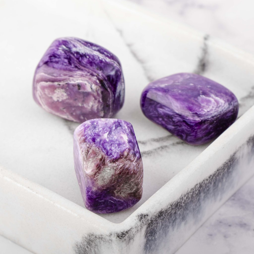 Čaroit je kámen hlubokého spánku, eliminuje úzkosti při usínání, odstraňuje noční můry a uklidňuje divoké sny. Chrání před nespavostí, náměsíčností nebo mluvením ze spaní.